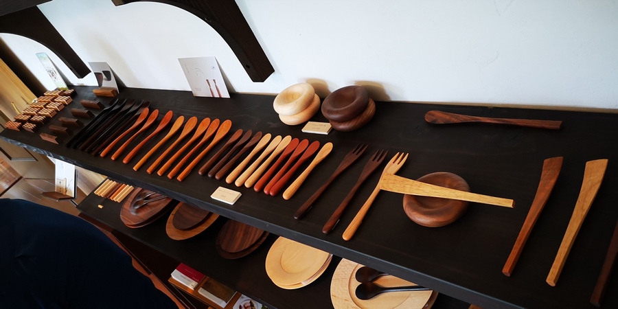 Notre artisan, Monsieur Kamino, est designer et également un artisan de bois. Nous avons eu le grand plaisir de visiter son atelier et sa galerie. Monsieur Kamino fait absolument tout lui même, à la main. Ses produits, d'art de la table et de décoration, en bois de noyer, d'érable, de hêtre et de chêne, ont des formes originales, épurées et très élégantes.