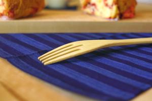 Ce jeu de couverts à dîner comprenant une cuillère, un couteau et une fourchette, a été confectionné avec du bambou Mousou (bambou d'hiver) très solide.