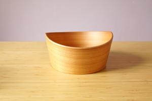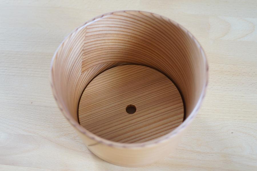 Fabriqué à la main par M. Shunji KURIMORI, maître de la technique Magewappa. Cette technique, vielle de plus de 400 ans, utilise la vapeur d'eau à haute température pour modeler des lames de bois selon la forme souhaitée. Le plus souvent les formes sont cylindriques, mais ce bol pousse cette technique au delà des limites! La qualité isolante du bois permet de conserver les glaçons pendant longtemps et de réduire la condensation.